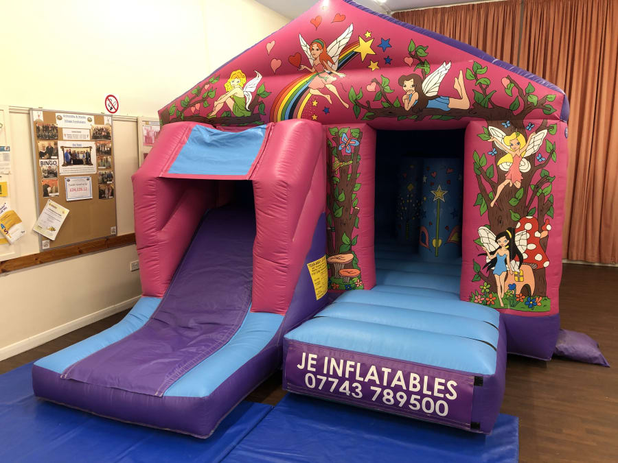 Something for the girls!!! With its stunning artwork of Fairies in a woodland setting, complete with rainbows, wands, stars and hearts - this Bouncy Castle is sure to make any little girl's party as magical as can be! Brand new for 2018, our Fairy Bounce n Slide was designed and built with maximum safety in mind and as with all of our inflatables it is tested by a registered PIPA Inspector annually. It is thoroughly cleaned and safety checked before each hire so you can be rest assured that it will arrive in immaculate condition ready for use.