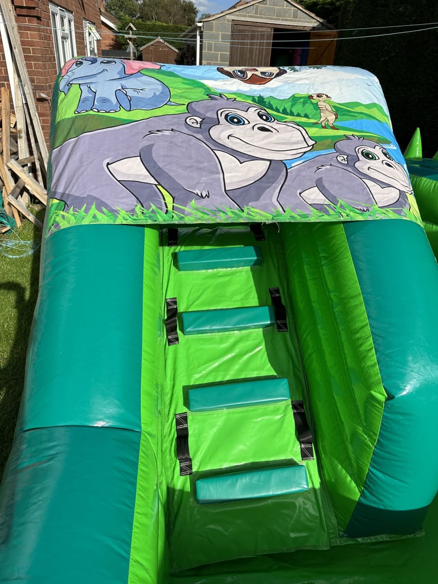 Hire our Jungle Theme play arena, 15x15ftand only 7.5 ft tall, so it will fit into most halls. It includes a ball pool, bouncy castle and slide, all in one play arena. All this for £120