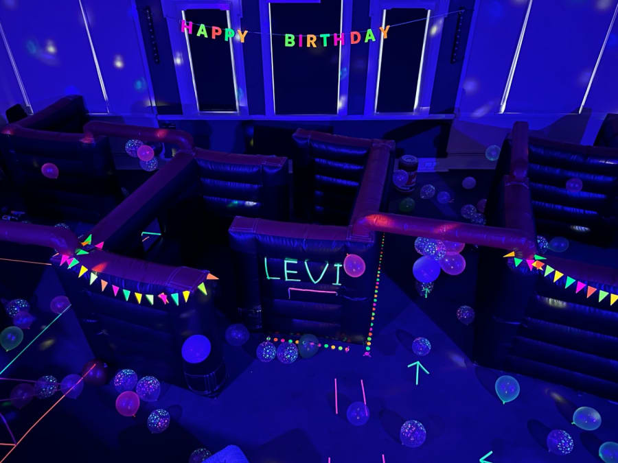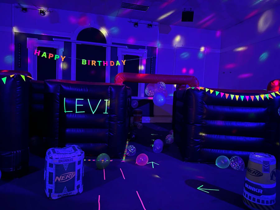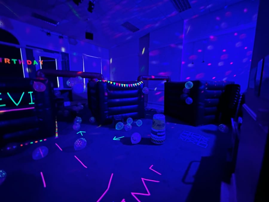 This package includes all of the above, and also neon supplies, bunting, signs, balloons. Black lighting, disco lighting, Bluetooth speaker, 2 marshals/game organisers.